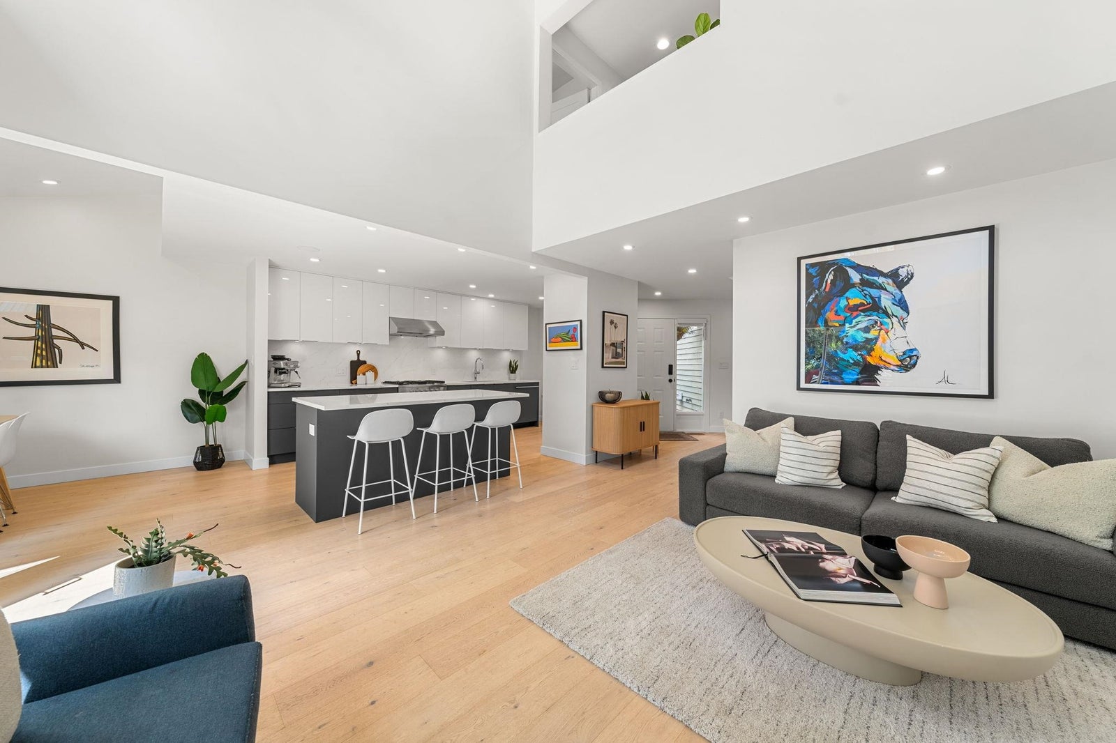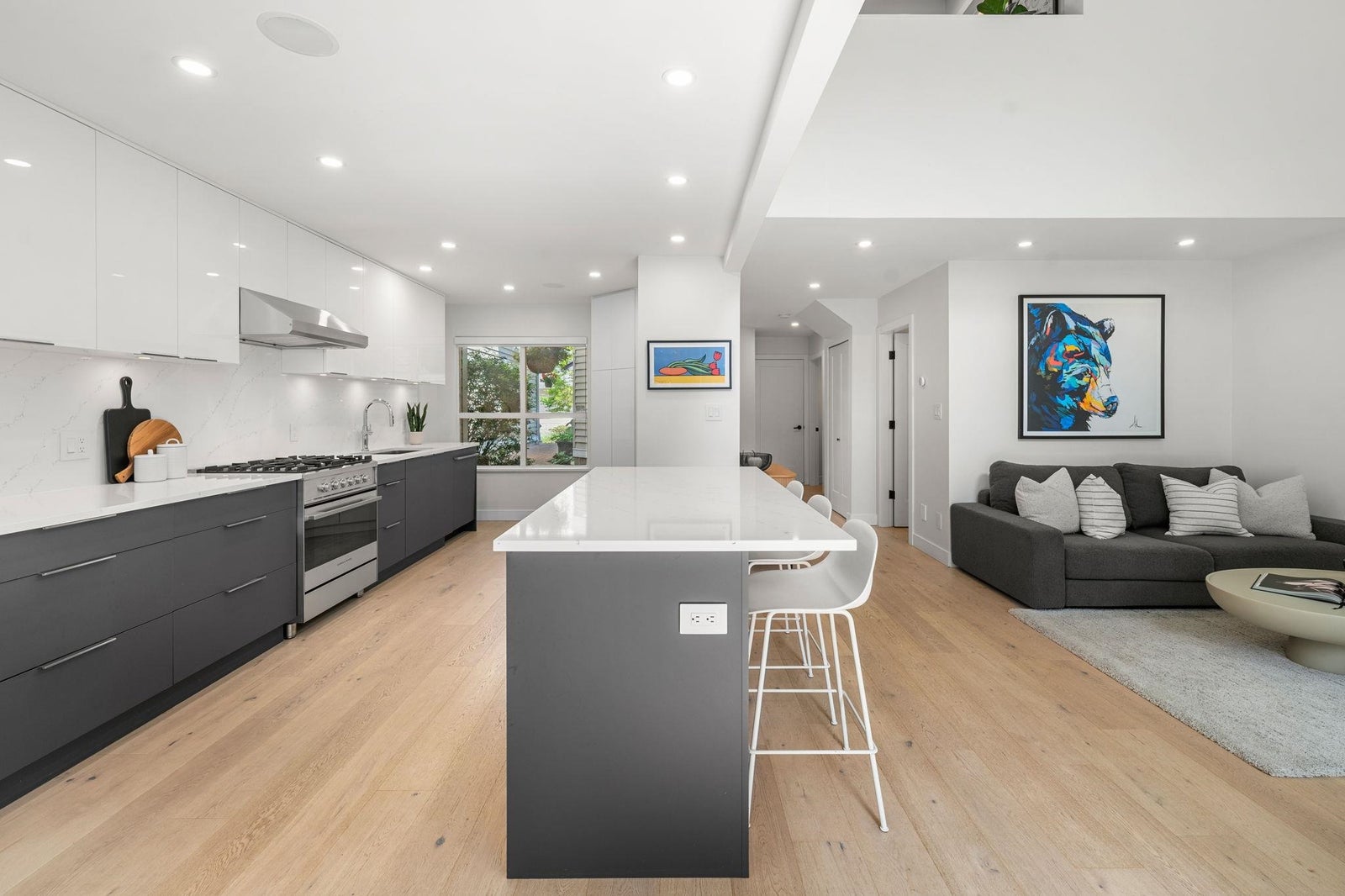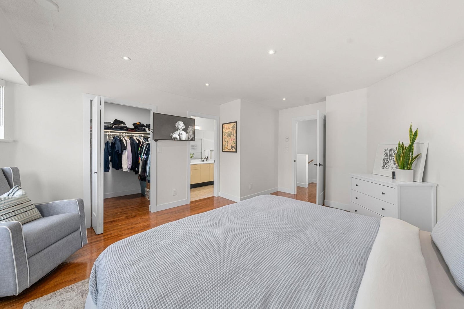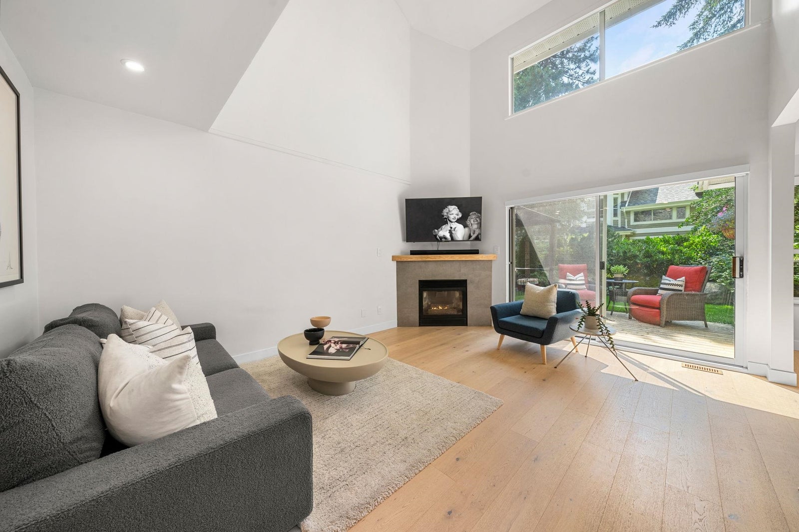 Step into elevated design in this architecturally striking 3-bed, 3-bath townhome, offering nearly 1,600 sq.ft. of refined living over 2 levels. Soaring 22-foot ceilings & expansive windows create a sense of space and light, anchored by wide plank oak HW floors & a sleek chef’s kitchen with gas range, contemporary cabinetry & integrated pantry. Upstairs, you'll find the ideal family-friendly layout:3 generous bedrooms & two full bathrooms all on one level, w/ oversized primary retreat, walk-in closet & 5-piece ensuite. Enjoy seamless indoor-outdoor flow w/ level deck/grassy area off the living room - ideal for summer BBQ's & kids/pets. Attached 2 CAR GARAGE! Peace of mind -new furnace, reno w/permits, upgraded appliances/HW tank & roof. Open house cancelled.