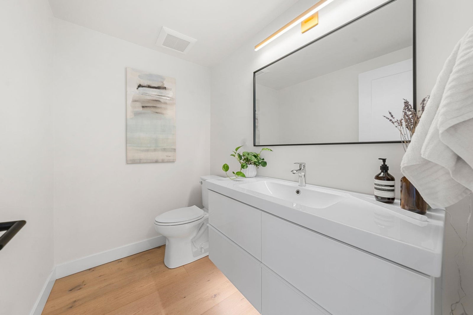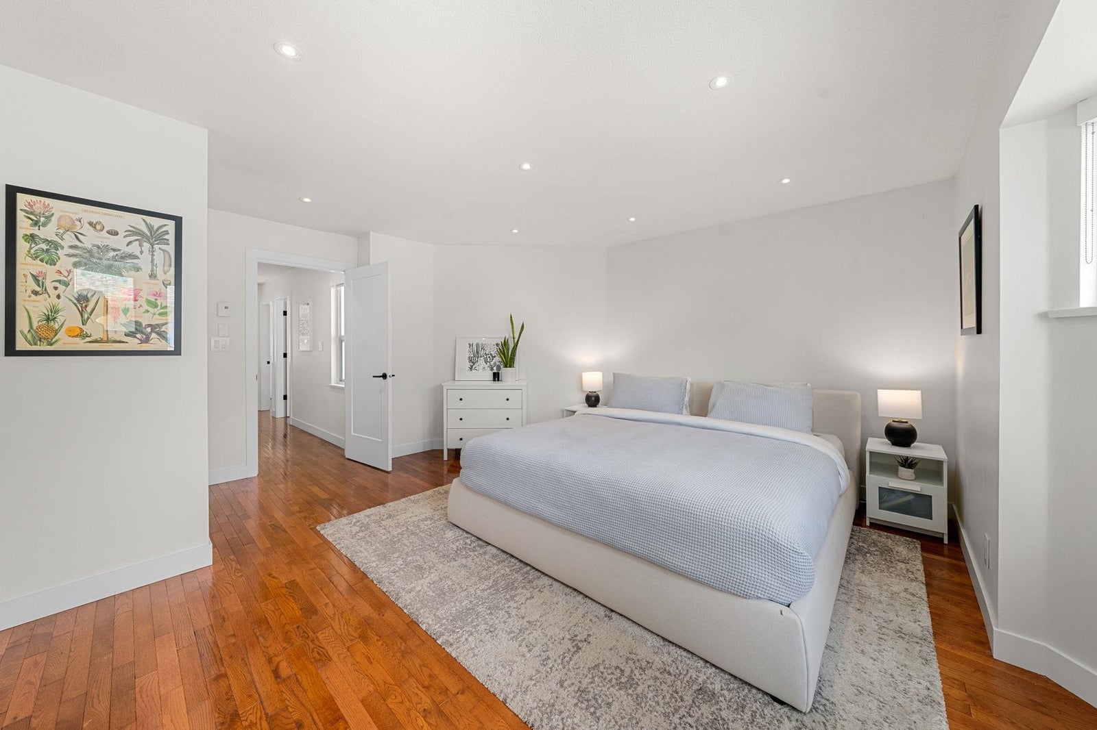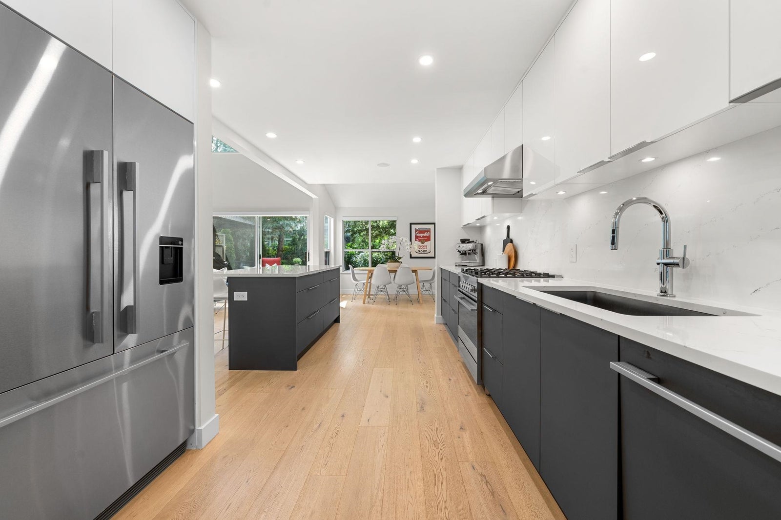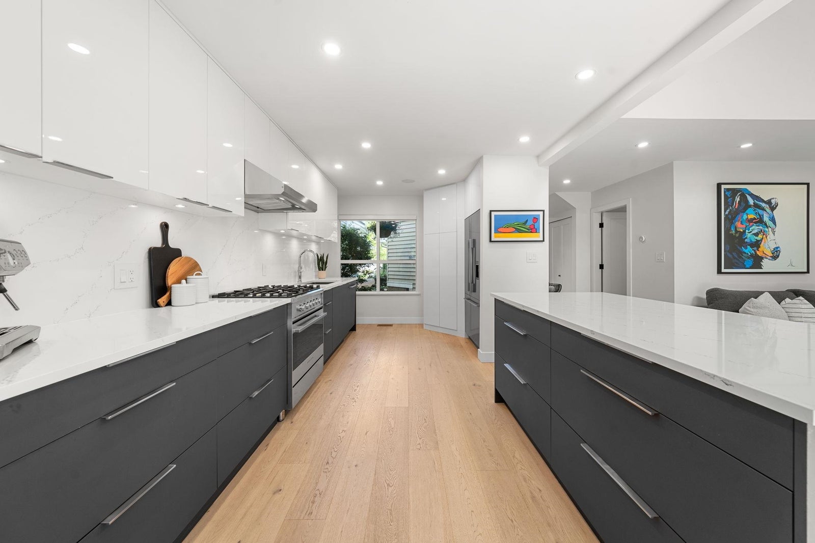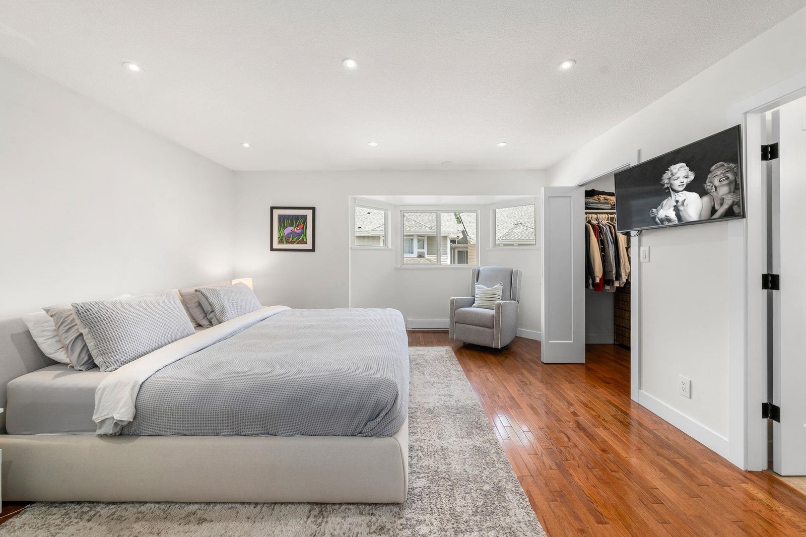 Step into elevated design in this architecturally striking 3-bed, 3-bath townhome, offering nearly 1,600 sq.ft. of refined living over 2 levels. Soaring 22-foot ceilings & expansive windows create a sense of space and light, anchored by wide plank oak HW floors & a sleek chef’s kitchen with gas range, contemporary cabinetry & integrated pantry. Upstairs, you'll find the ideal family-friendly layout:3 generous bedrooms & two full bathrooms all on one level, w/ oversized primary retreat, walk-in closet & 5-piece ensuite. Enjoy seamless indoor-outdoor flow w/ level deck/grassy area off the living room - ideal for summer BBQ's & kids/pets. Attached 2 CAR GARAGE! Peace of mind -new furnace, reno w/permits, upgraded appliances/HW tank & roof. Open house cancelled.