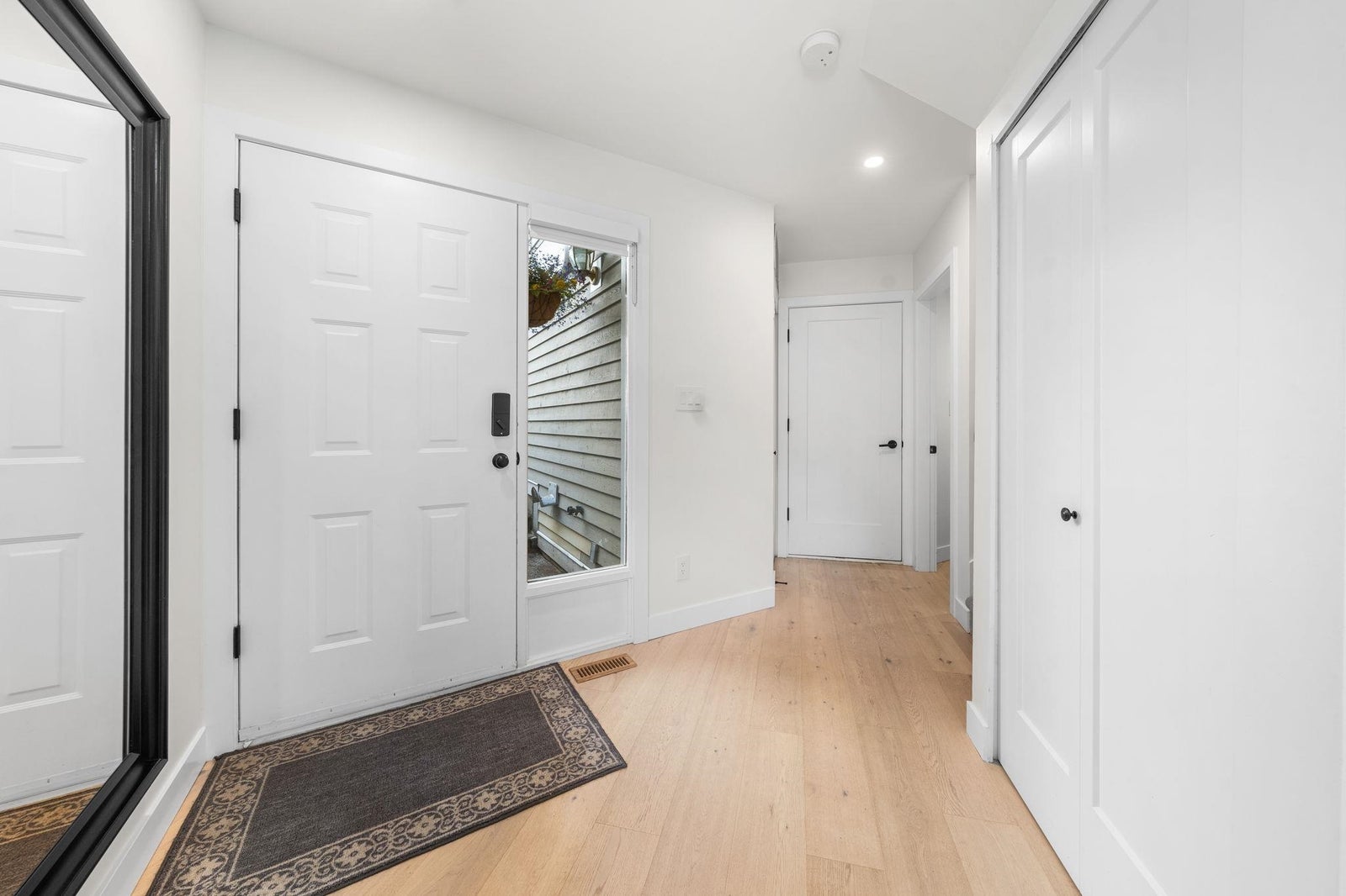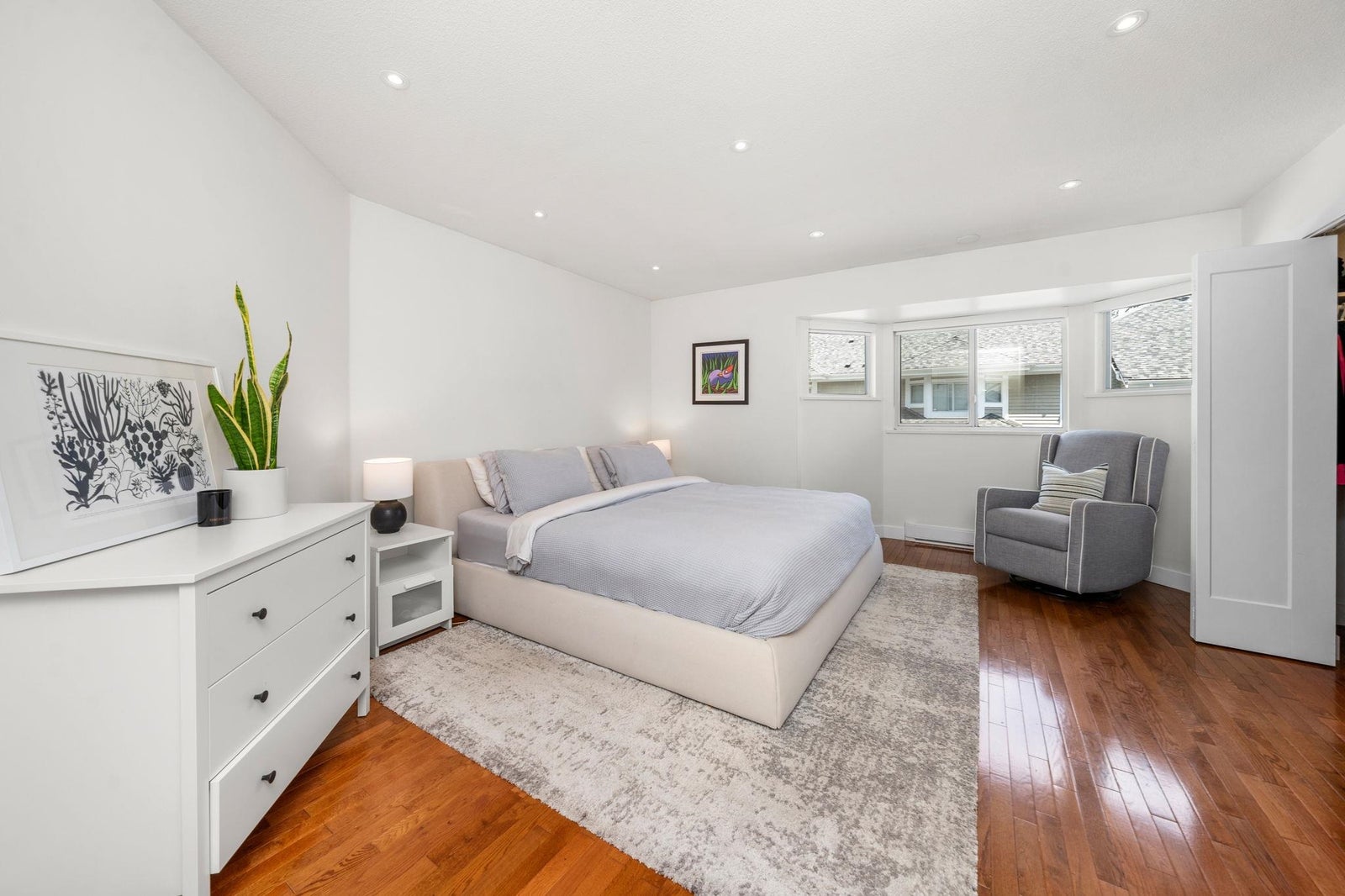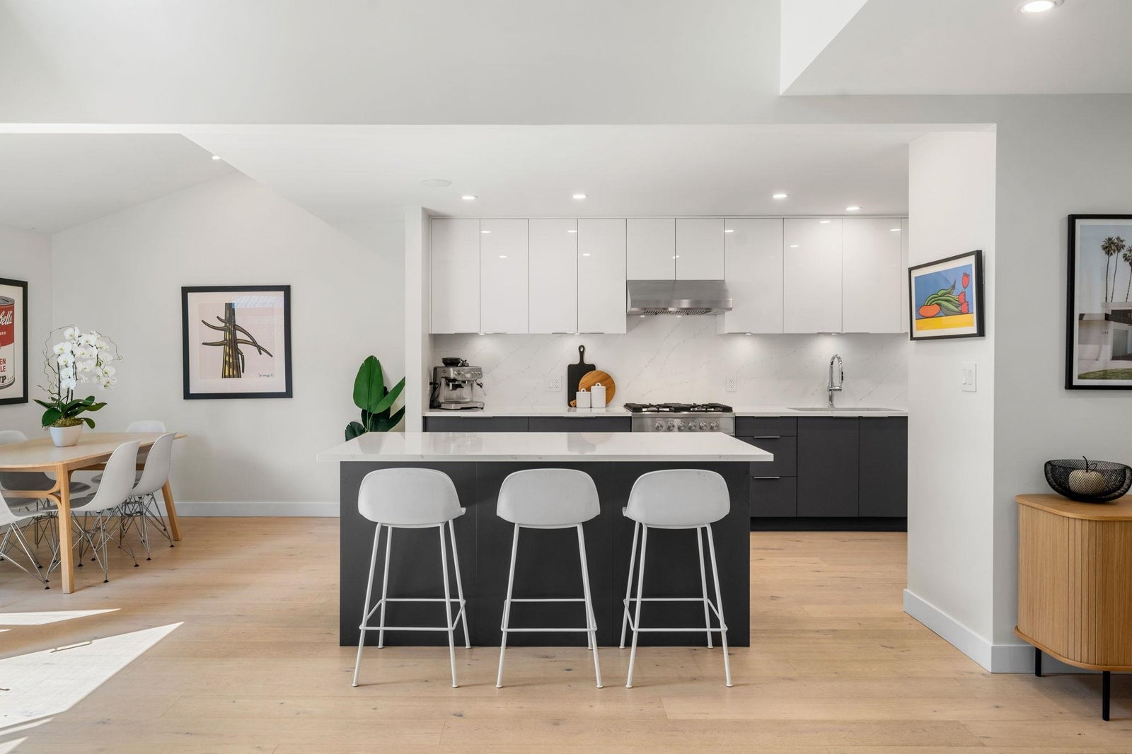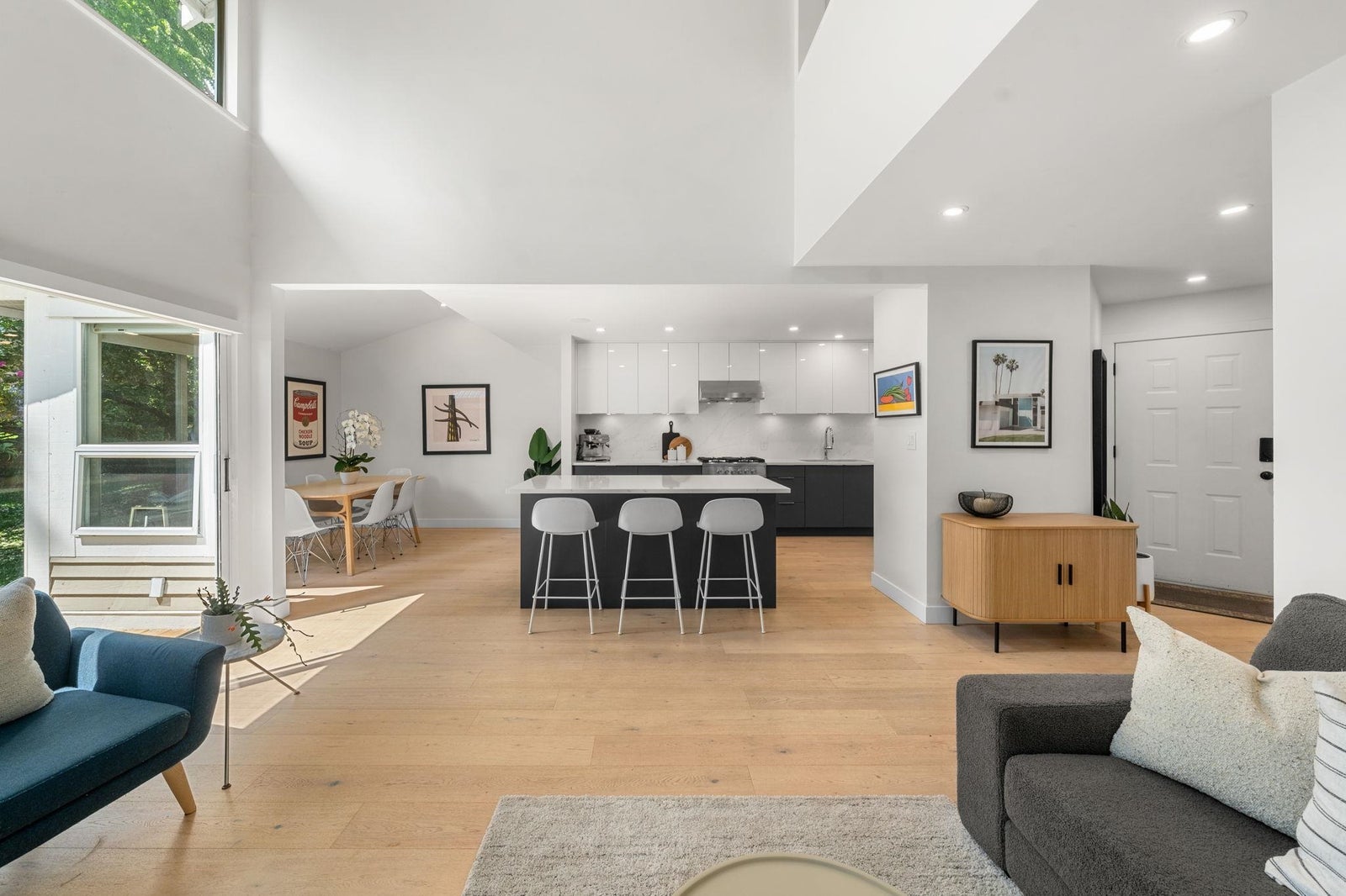 Step into elevated design in this architecturally striking 3-bed, 3-bath townhome, offering nearly 1,600 sq.ft. of refined living over 2 levels. Soaring 22-foot ceilings & expansive windows create a sense of space and light, anchored by wide plank oak HW floors & a sleek chef’s kitchen with gas range, contemporary cabinetry & integrated pantry. Upstairs, you'll find the ideal family-friendly layout:3 generous bedrooms & two full bathrooms all on one level, w/ oversized primary retreat, walk-in closet & 5-piece ensuite. Enjoy seamless indoor-outdoor flow w/ level deck/grassy area off the living room - ideal for summer BBQ's & kids/pets. Attached 2 CAR GARAGE! Peace of mind -new furnace, reno w/permits, upgraded appliances/HW tank & roof. Open house cancelled.