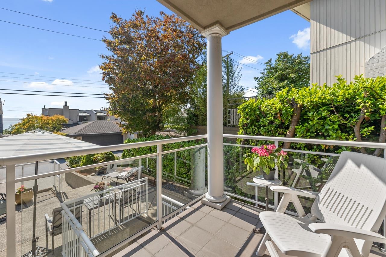 Downsizer’s dream in Dundarave! This 3-level, 3 bed + den/office, 4 bath duplex offers low-maintenance living with sprawling ocean views and integrated indoor-outdoor living. Enjoy a sunny south patio, 2 view balconies, and a charming front garden. Two bedrooms on the main level EACH with an ensuite bath, while the lower level offers a bedroom, full bath, separate entry and roughed-in plumbing - ideal for guests or an easy suite conversion. Steps to the Seawall and beach, to bask in the ever changing seascapes. Stroll to Dundarave Village for shops, services, grocery, cafes, and coffee with friends. The perfect blend of comfort, convenience, and location in one of West Vancouver’s most sought-after communities. Easy to show & Open House Sun, Dec 14th 2-3:30pm